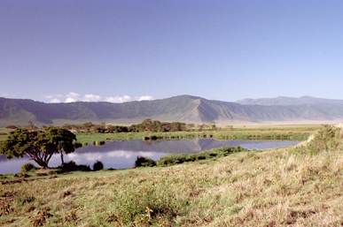 Like much of Africa, the Conservation Area has a wet and dry season. The wet season usually lasts between November and May. Between June and October, there is little rain. Our first trip to the area was in January 1991. We did not experience any rain and the temperatures were warm. June and July apparently are the coldest months in the area, with the temperatures becoming colder the higher you are, which we found out on our second trip in July 2003. We were quite surprised by how cold it was at night and cool during the day. Because of the cold at this time of year, moisture condenses and forms clouds around the rim of the Crater. This condition was prevalent during our stay in 2003, and the Crater floor usually was not visible from the rim, much to the disappointment of those in our group who were experiencing their first trip to Ngorongoro. They missed a spectacular view.