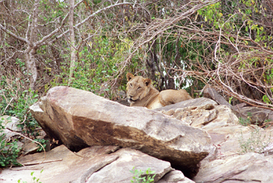 Sand Rivers Camp offered three safari excursions, boat rides on the Rufiji River, hiking through the bush and game drives. Each offered unique experiences of Africa. The Rufiji River attracted numerous animals to its waters, easy viewing of which was provided from the confines of our small john boats. Hippos grazed on the bank or submerged themselves in the water. African fish eagles soared overhead, searching for fish. Lions basked in the sun on the rocks high on the River’s bank. Waterbuck warily approached the River’s edge for a drink of water. All of this would have been missed had we not floated the River at Sand Rivers. |
